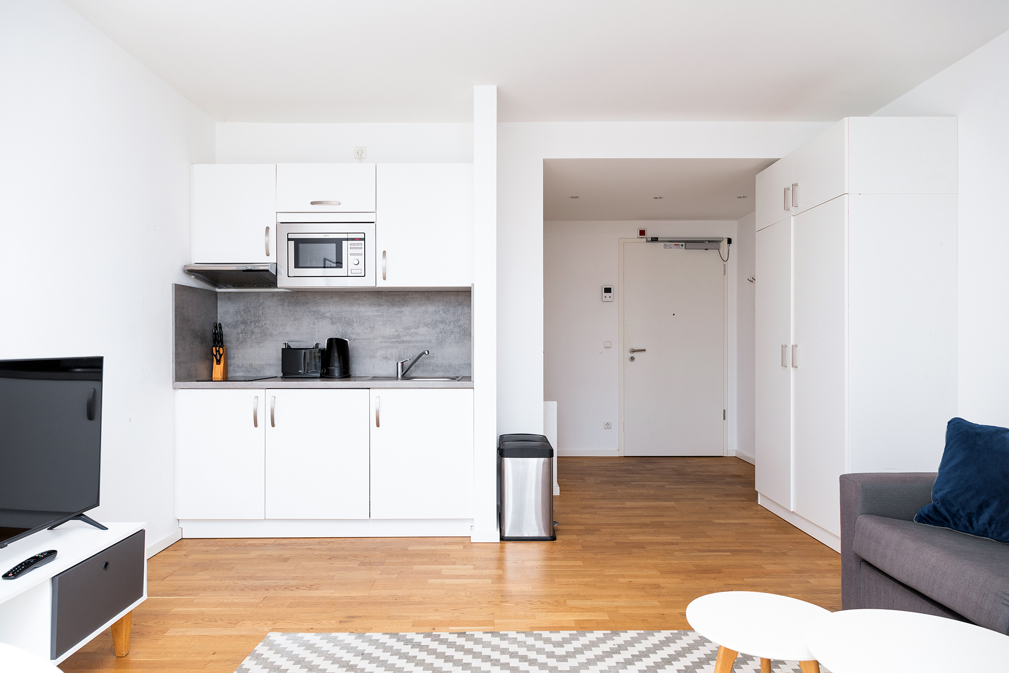 Overall, this modern furnished studio apartment provides a convenient and comfortable living space in a vibrant neighborhood, making it an ideal choice for short stays.